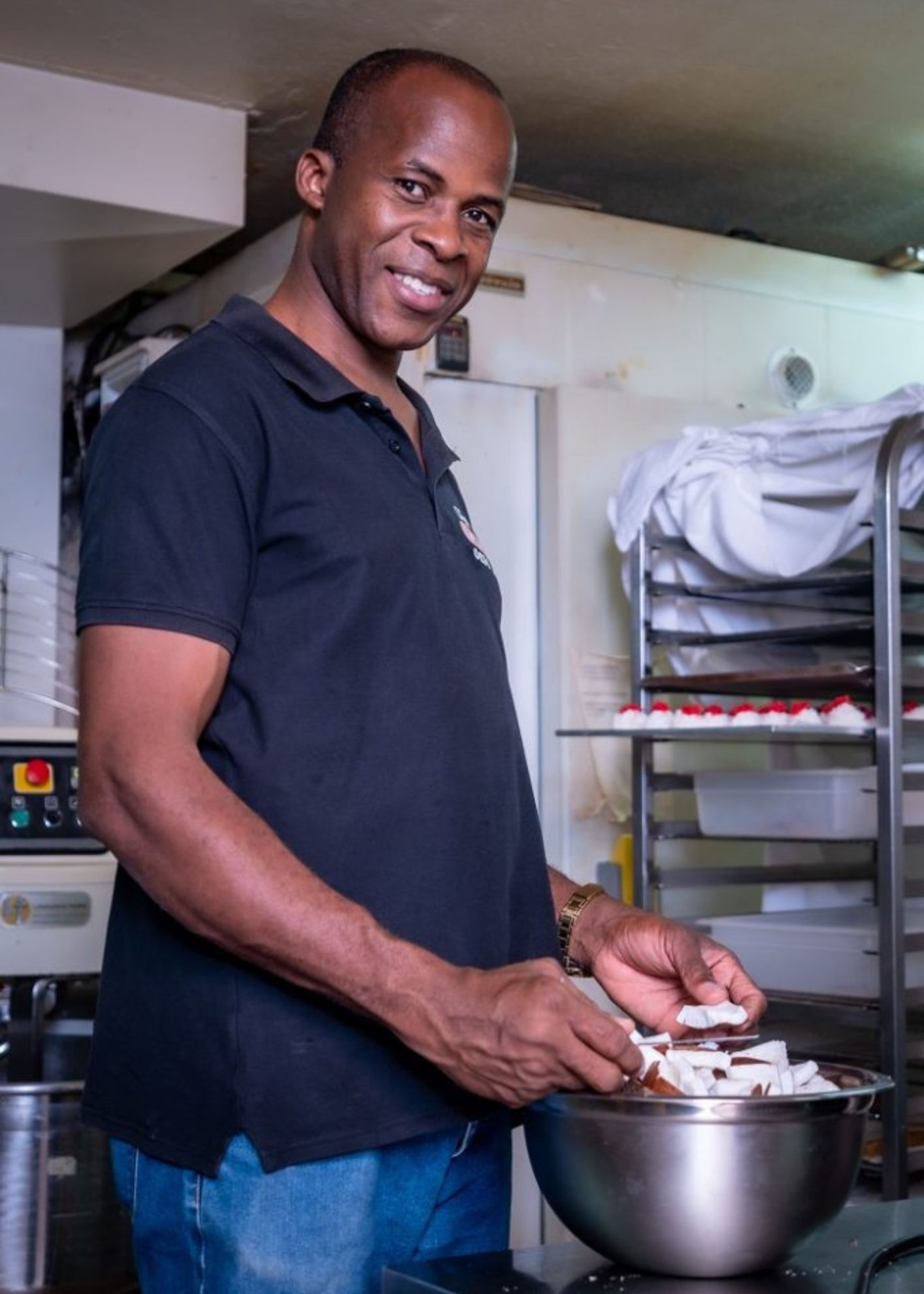 J’ai acheté mon premier sac de farine d’un kilo, et nous produisions, ma femme et moi, depuis notre appartement au troisième étage. Dieu nous a fait grâce, et notre activité a bien marché. J’ai pu obtenir mon premier local et signer mon premier bail commercial. Un frère est parti démarcher Destreland, le plus grand centre commercial de Guadeloupe. Ensuite, je suis allé proposer mes produits à Milénis, puis à plusieurs autres enseignes.